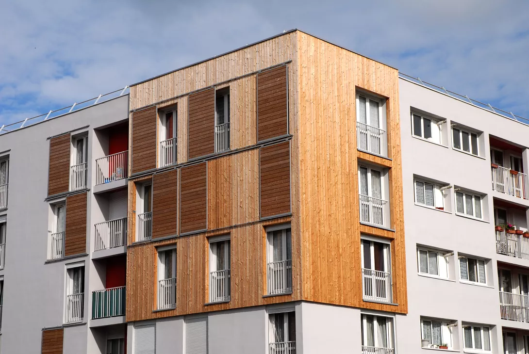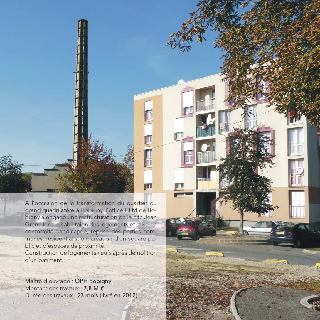 Réhabilitation de la cité Jean GREMILLON : 14 bâtiments, 280 logements (15.000 m2) Site occupé, intervention dans les appartements (Plomberie, sols souples, carrelage, peinture) clos et couverts, Ravalement et bardage bois