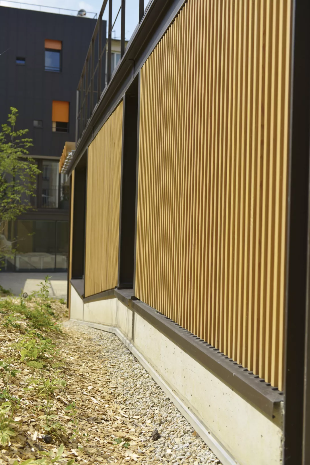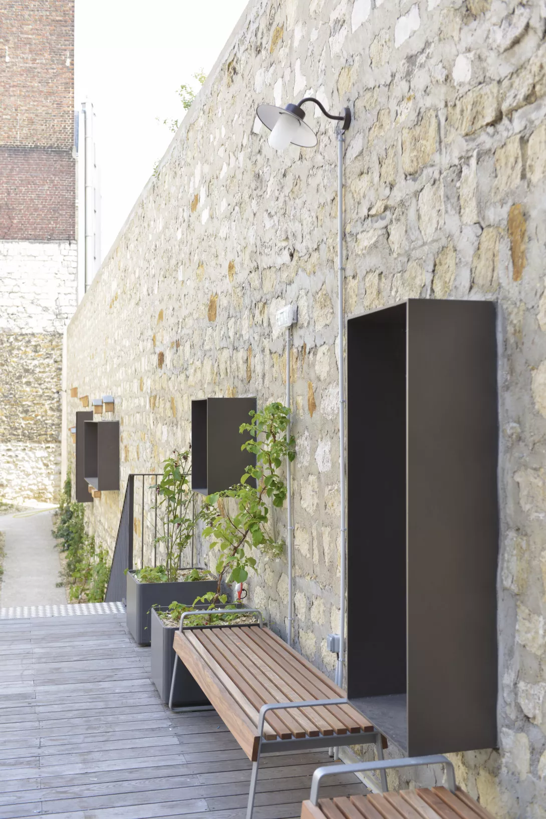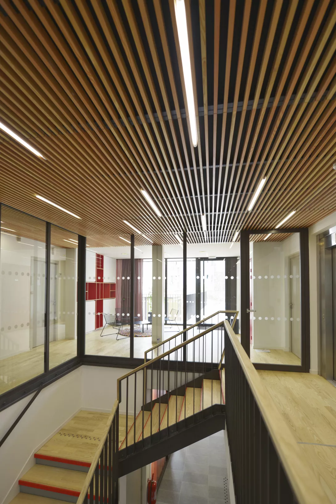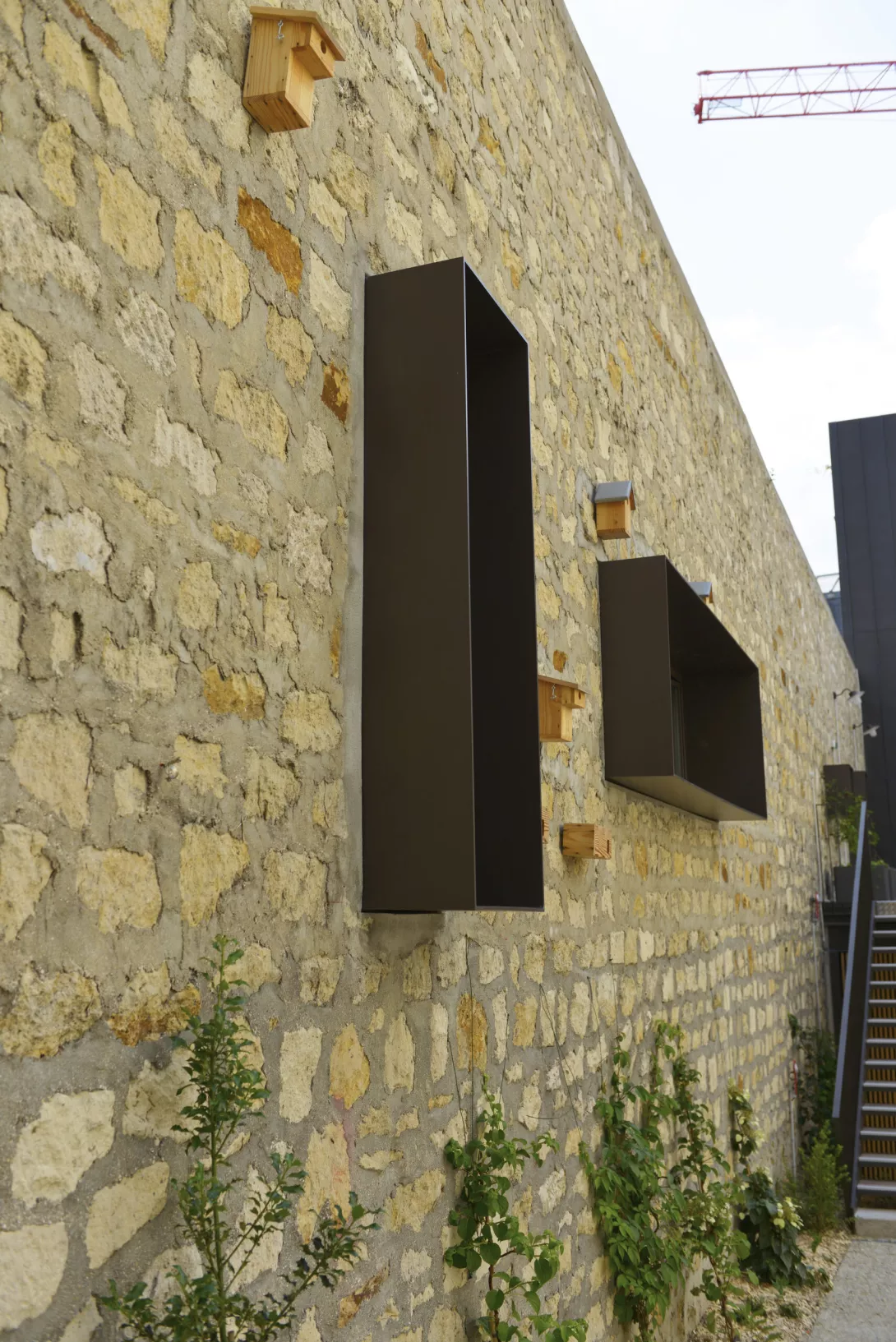 Réhabilitation et doublement de surface en extension du bâtiment. Les planchers du Bâtiment existant sont démolis et reconstruits. Le bâtiment jardin est réalisé en structure métallique avec toiture type plancher bac collaborant, isolé, étanché et végétalisé