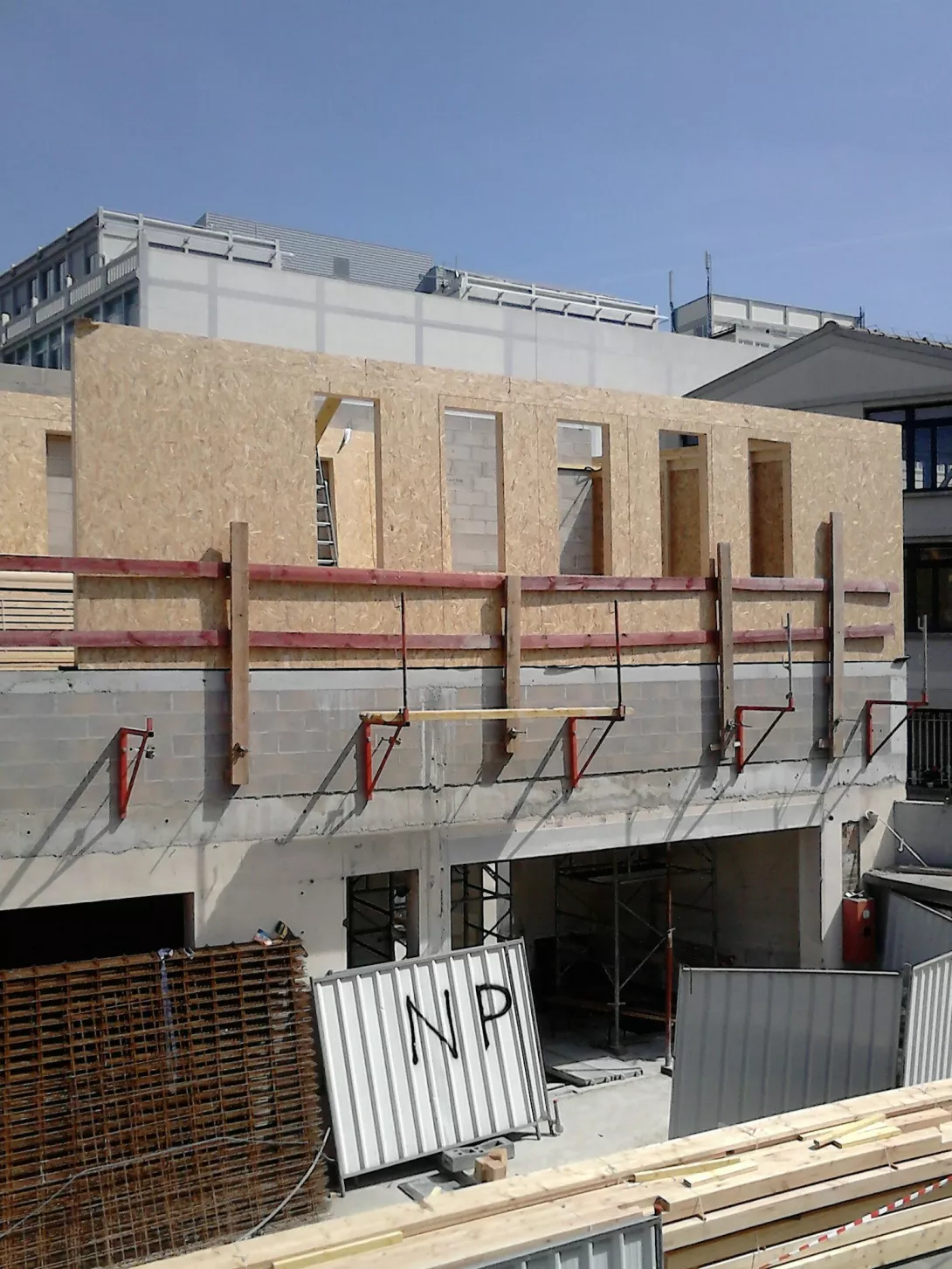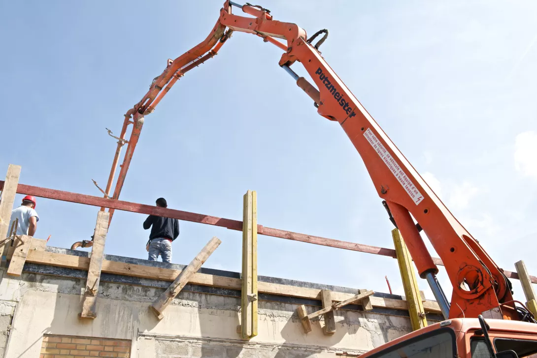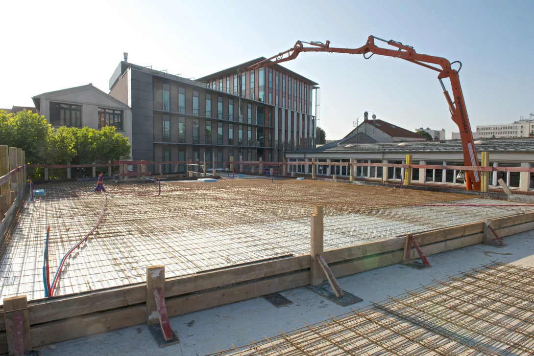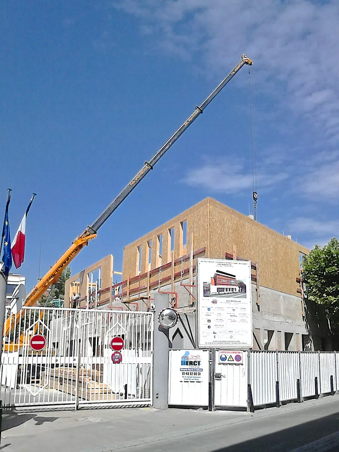 Construction du nouveau centre de restauration en R+1, structure mixte Bois/béton