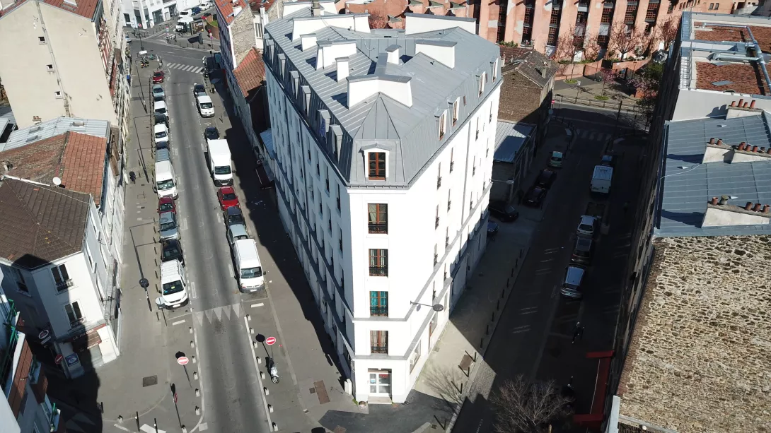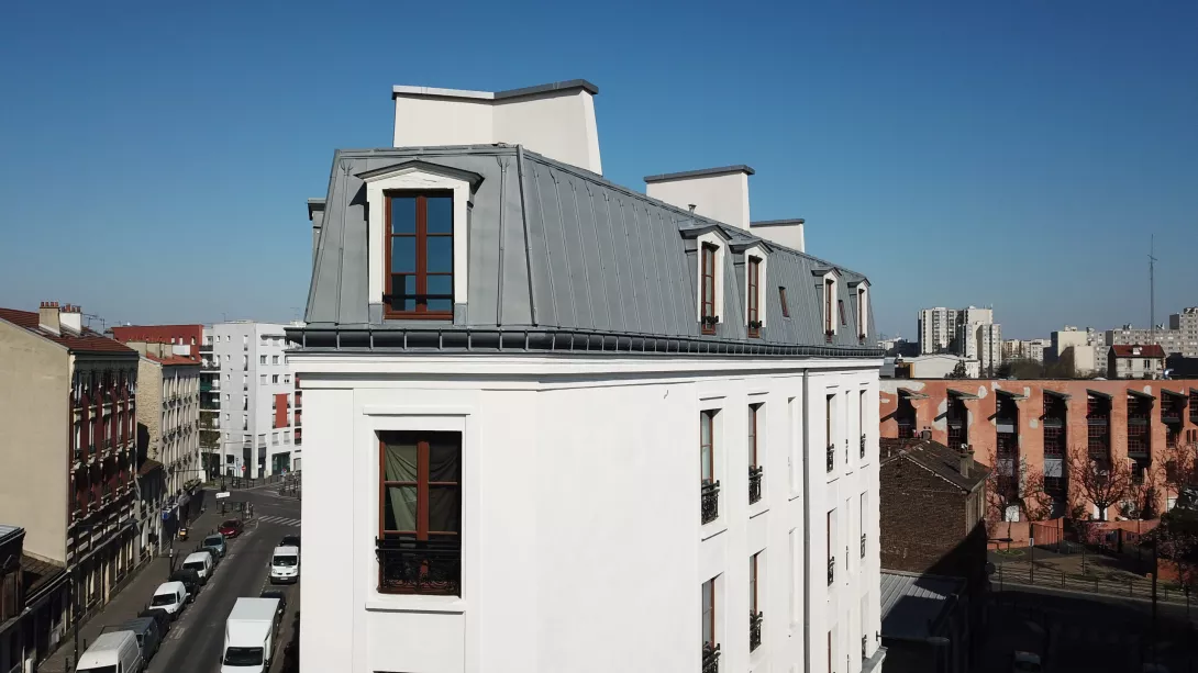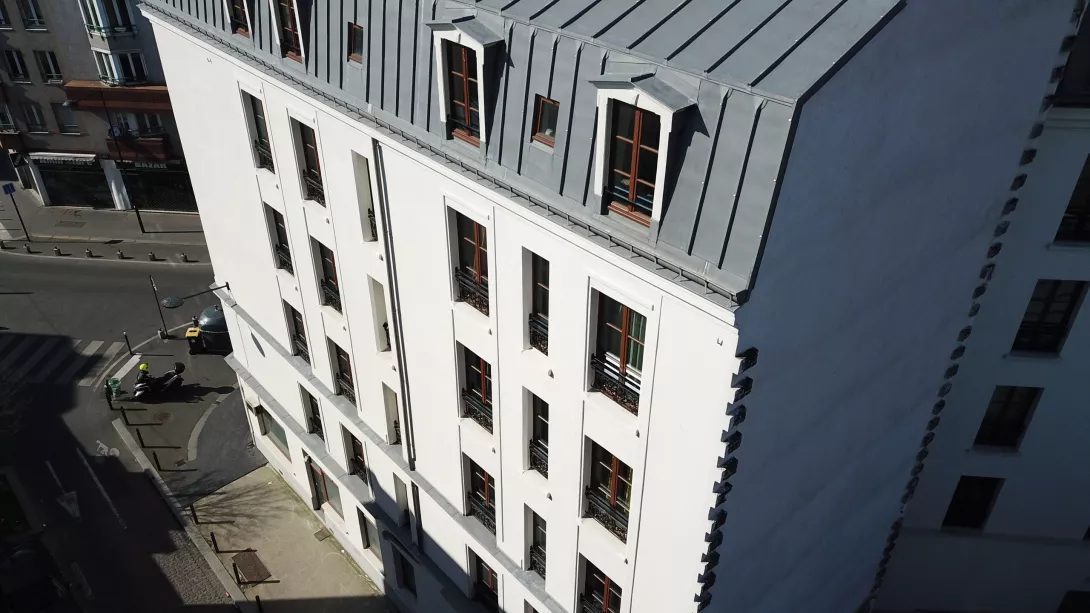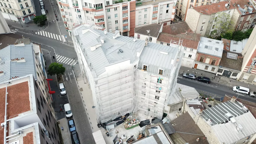 Réaménagement complet du 5ème étage en logements neufs. Réhabilitation des 4 étages inférieurs en site occupé. Réhabilitation thermique (ITE). Refection complete de la toiture