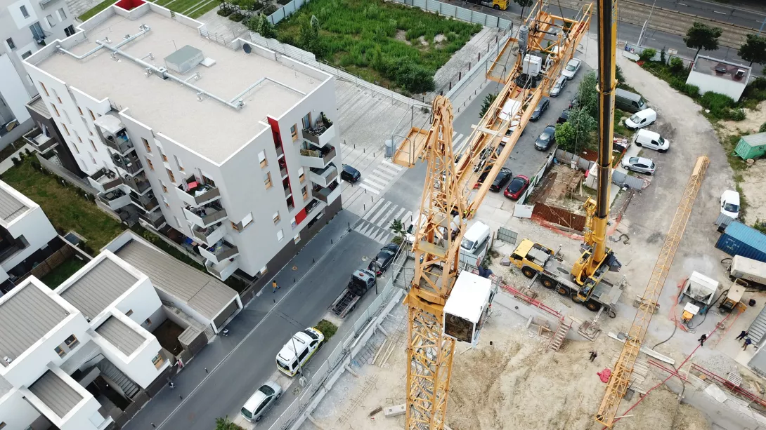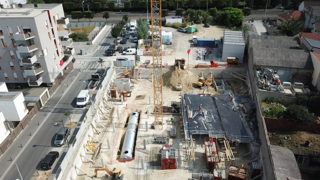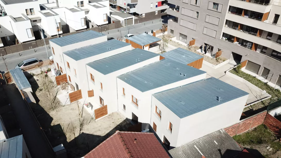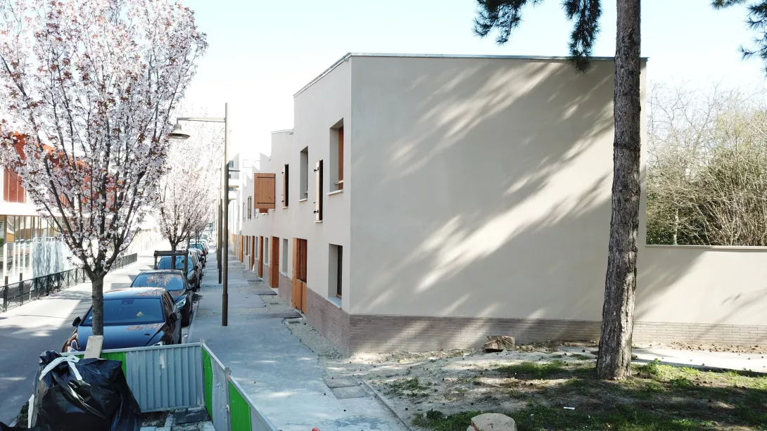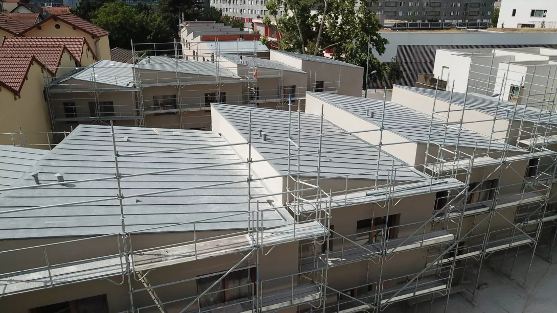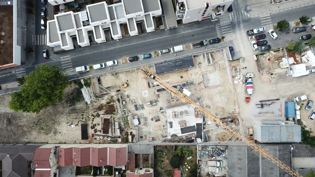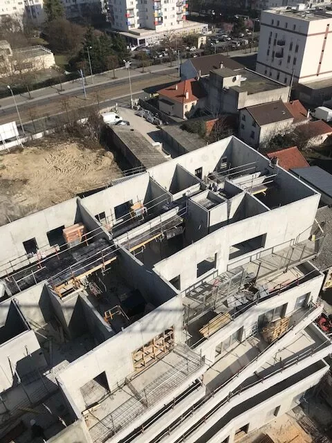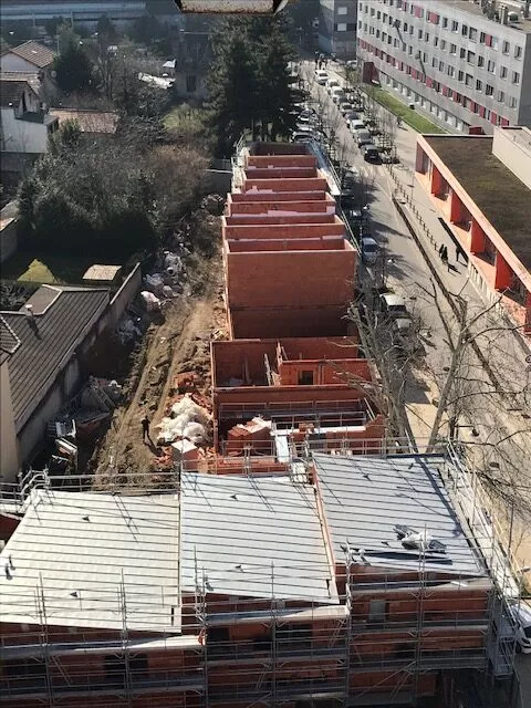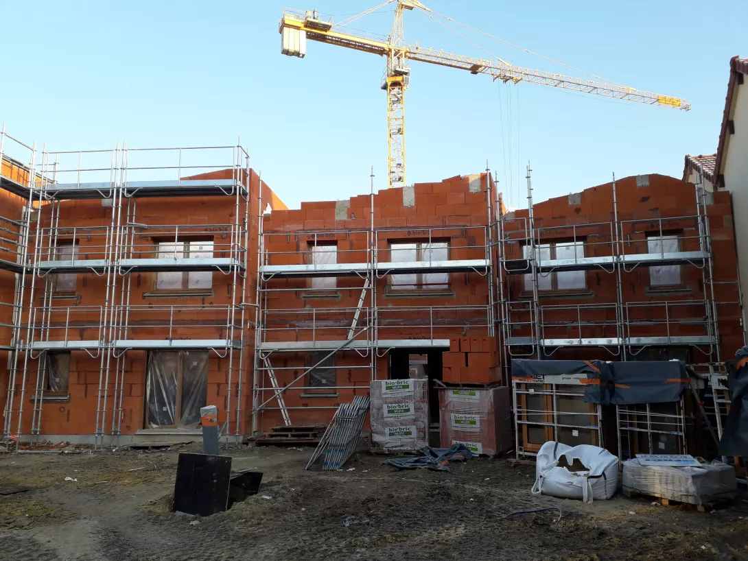 Construction neuve en entreprise générale. 17 maisons individuelles en briques porotherm et ITE, Construction du collectif en béton banchés sur un parking d'un sous sol (voiles par passes).