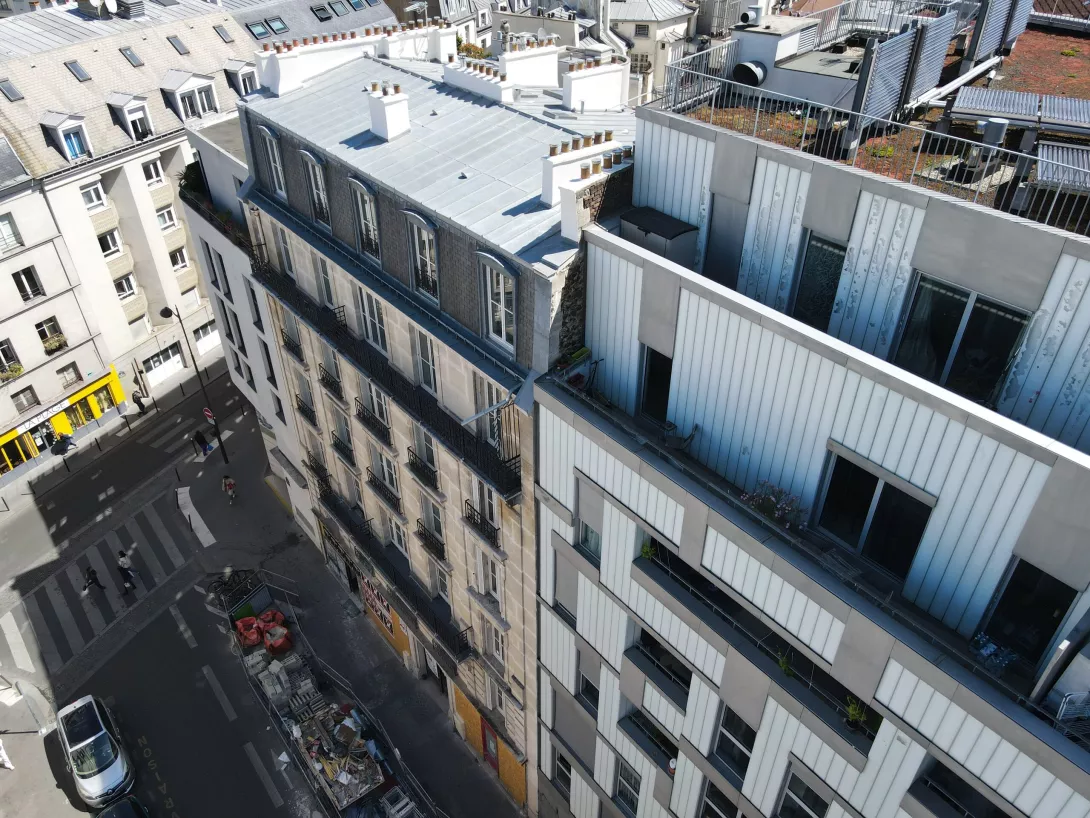 Réhabilitation de 2 immeubles (R+4 et R+6) composés de 26 logements et 3 commerces. Travaux en tout corps d'état en milieu semi-occupé – Création ascenseur extérieur pour le R+6 SHAB : 1 398m²