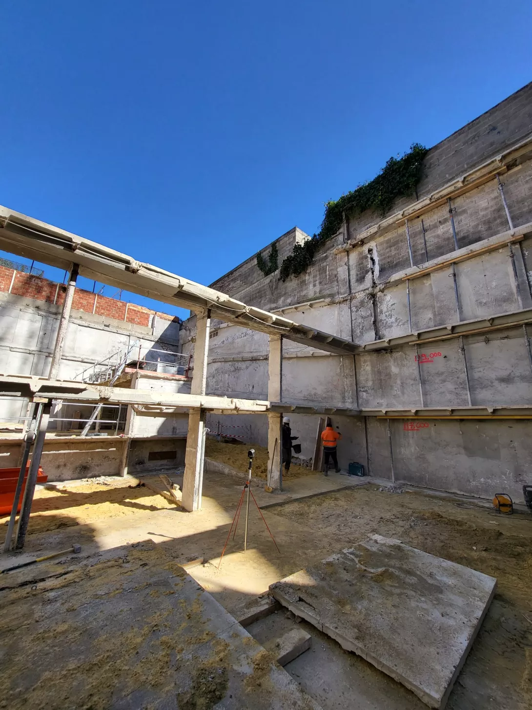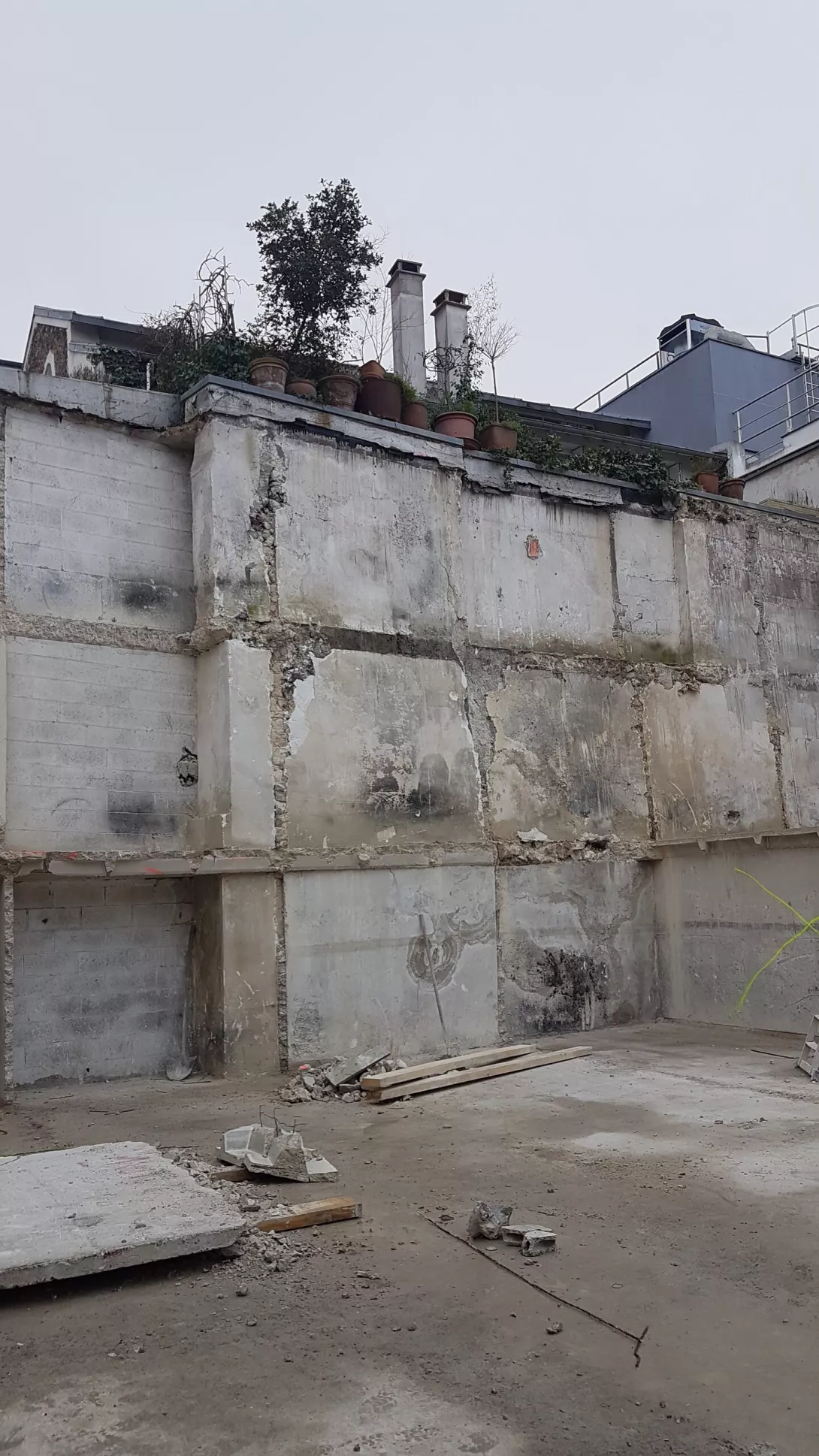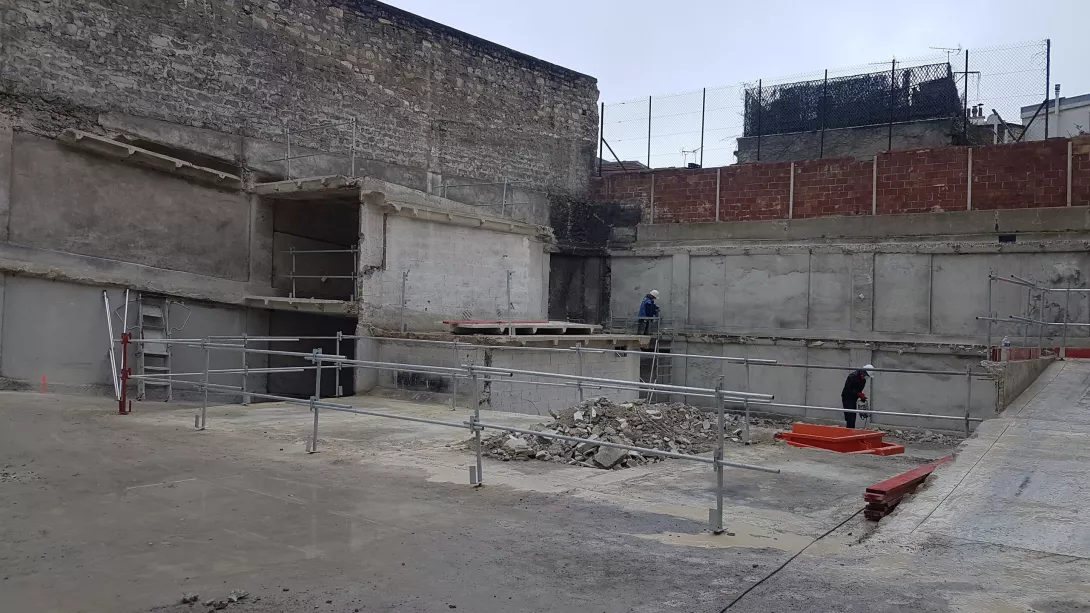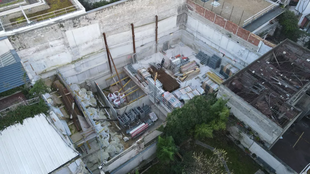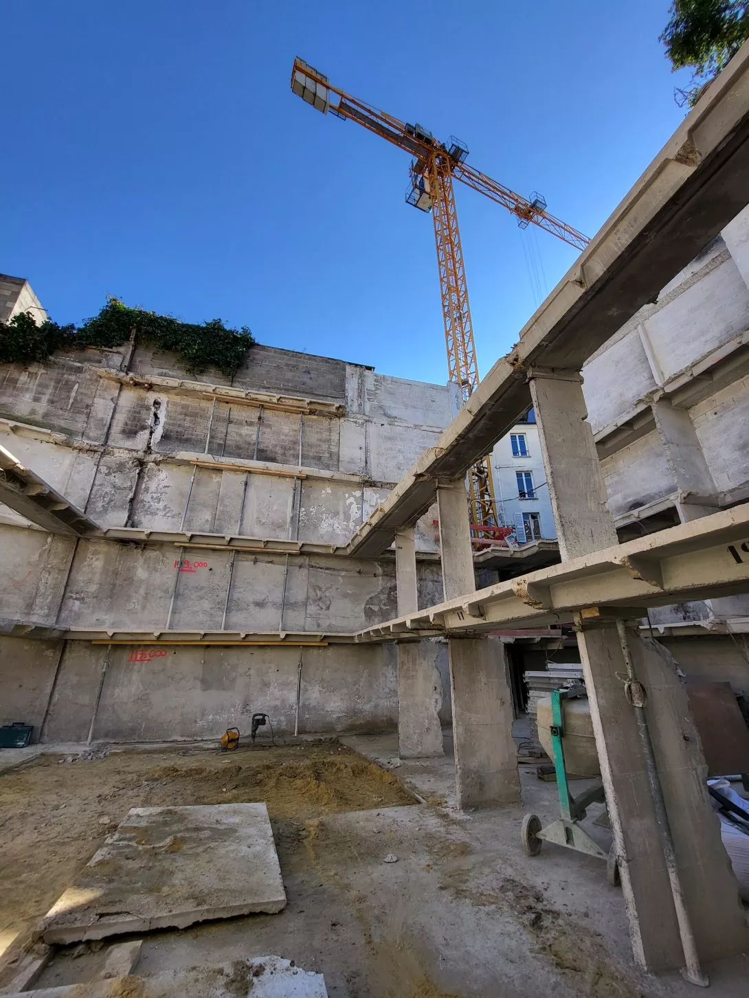 et l’élévation, sur l’infrastructure reconstruite, d’un immeuble de bureaux en R+3 et d’une maison individuelle en R+2; Le comblement d’une partie des infrastructures existantes pour création d’une zone de pleine terre.