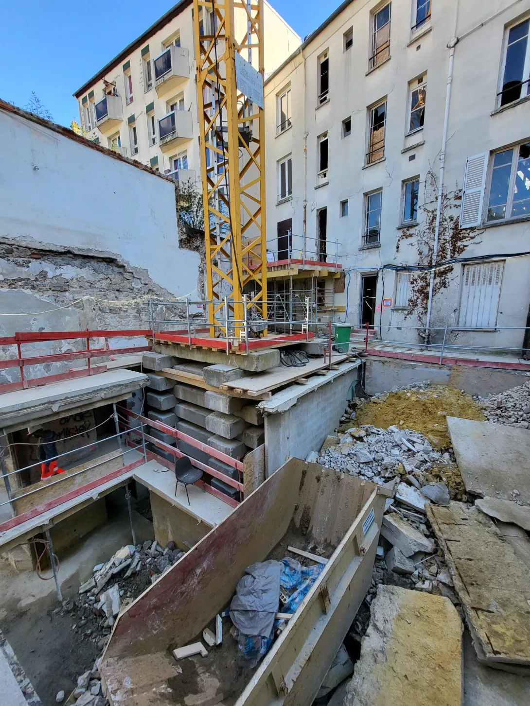 collectifs en R+5 sur un niveau de sous-sol partiel (inchangé); La démolition complète du bâtiment en fond de parcelle, à usage de parc de stationnement (actuellement R+2 sur 2 niveaux de soussol),