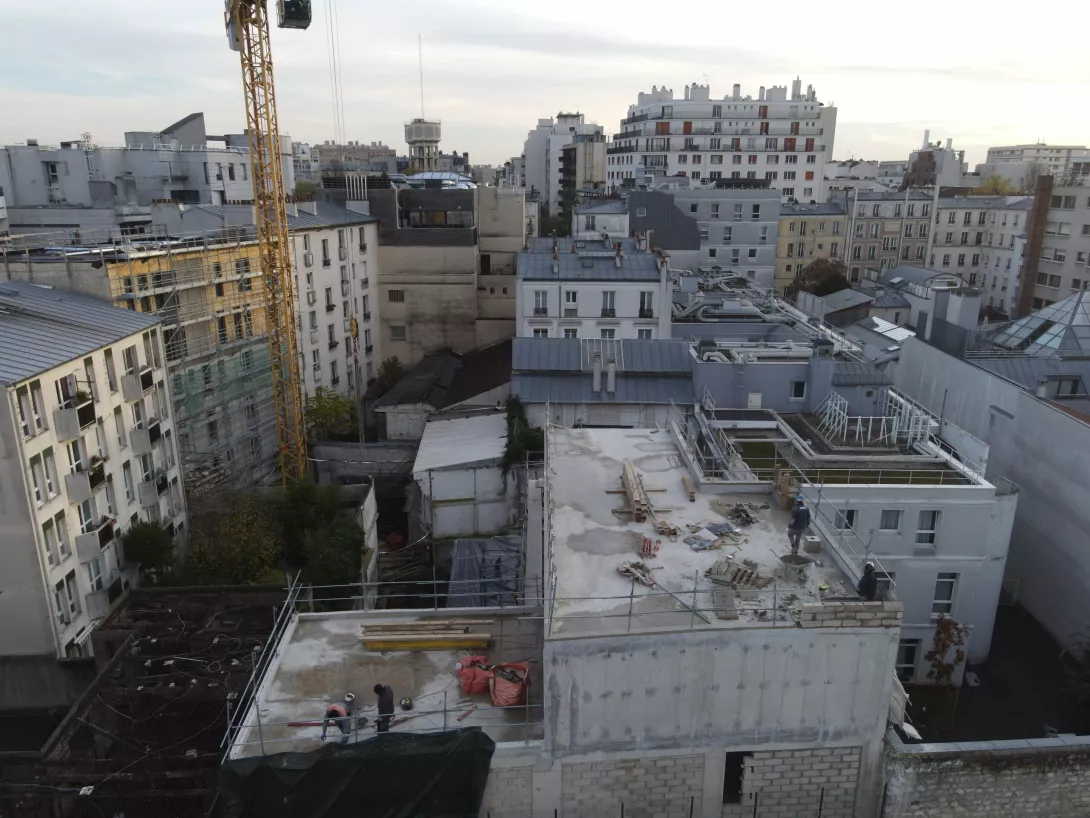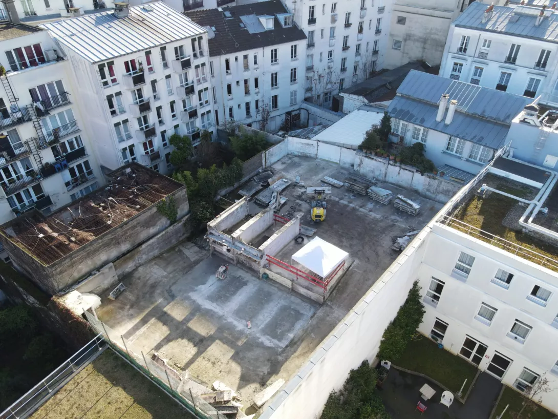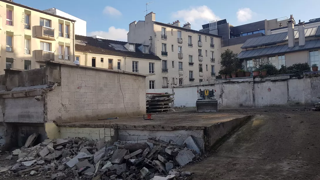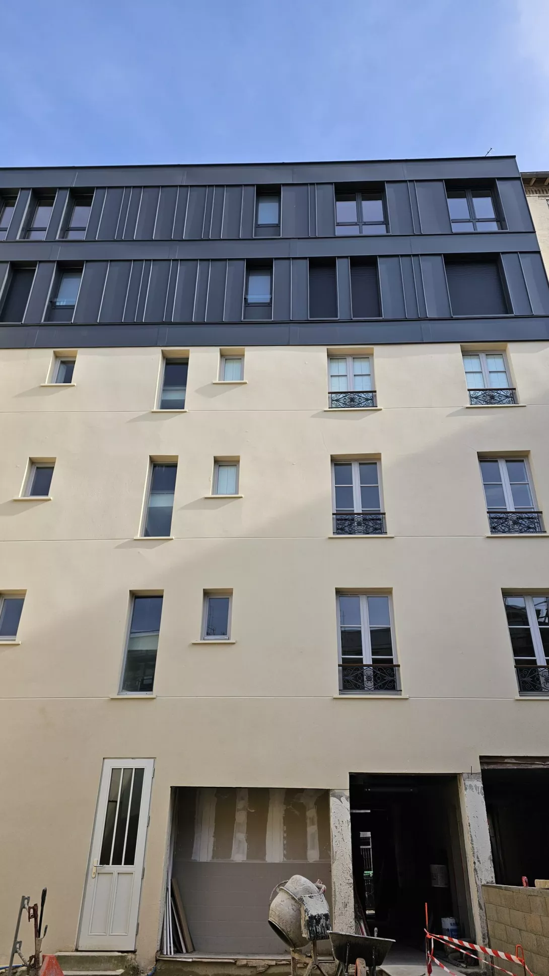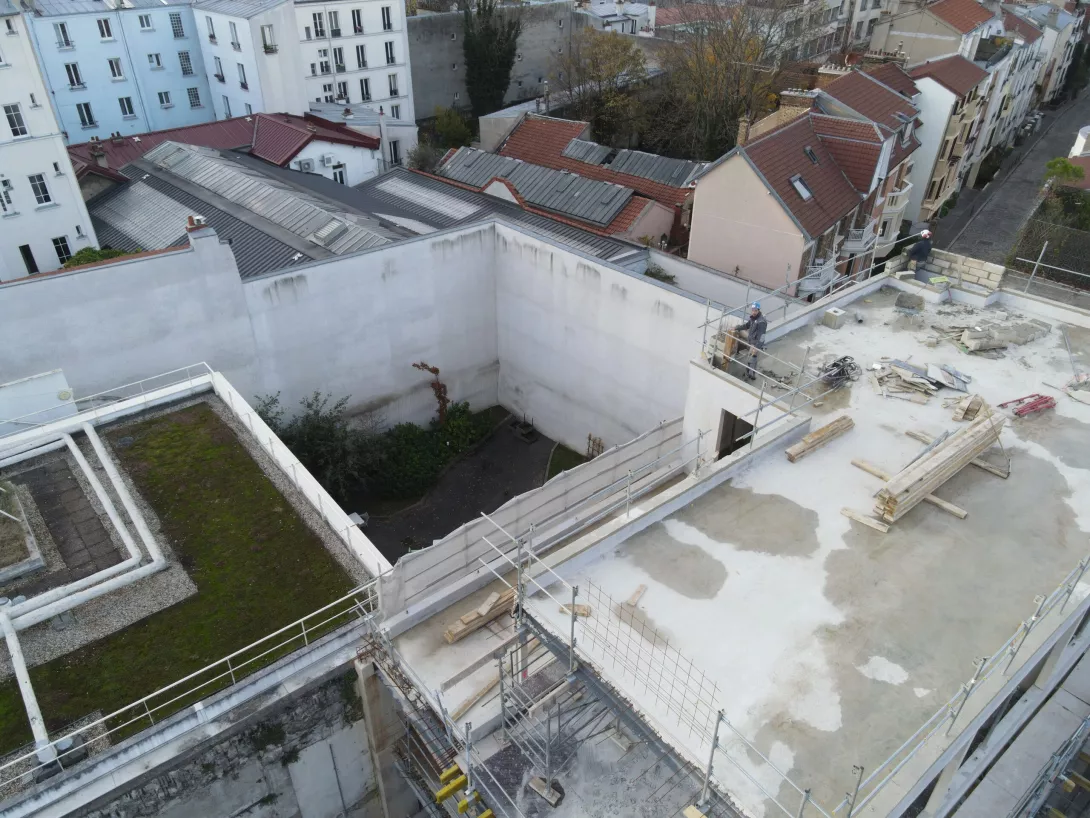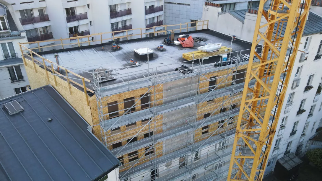 Réhabilitation de l’immeuble sur rue (actuellement R+3 + Combles), et sa surélévation pour en faire un immeuble de logements