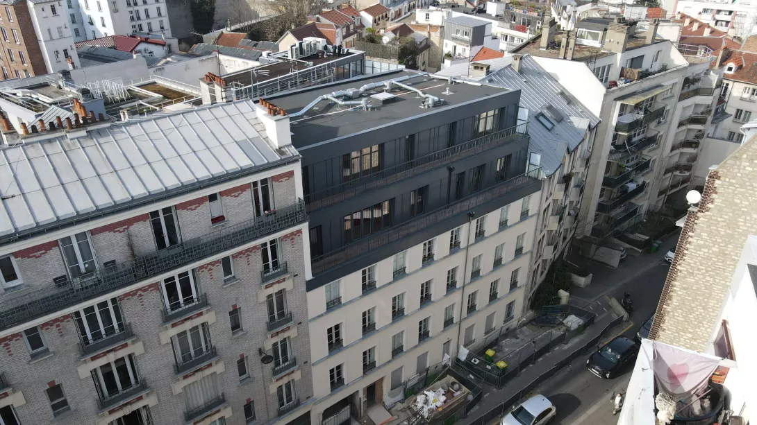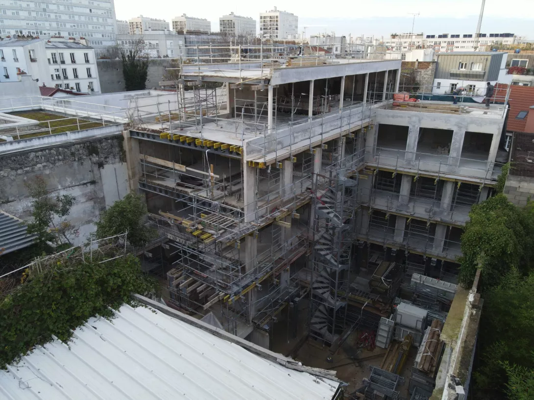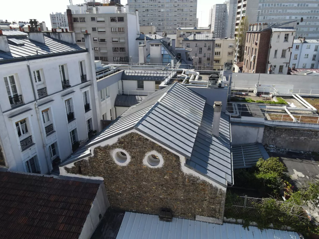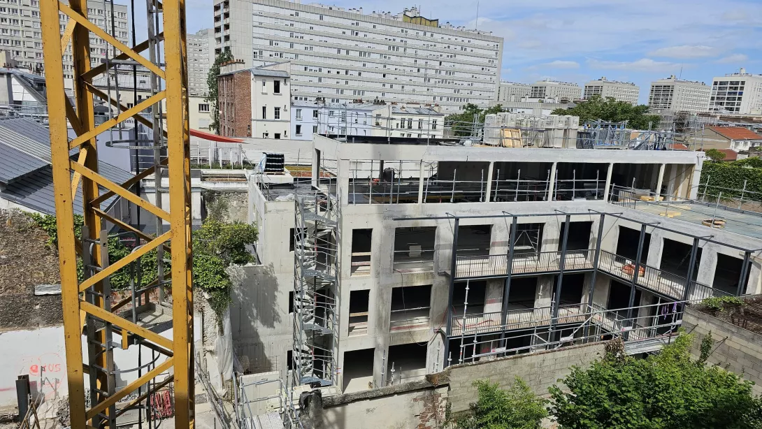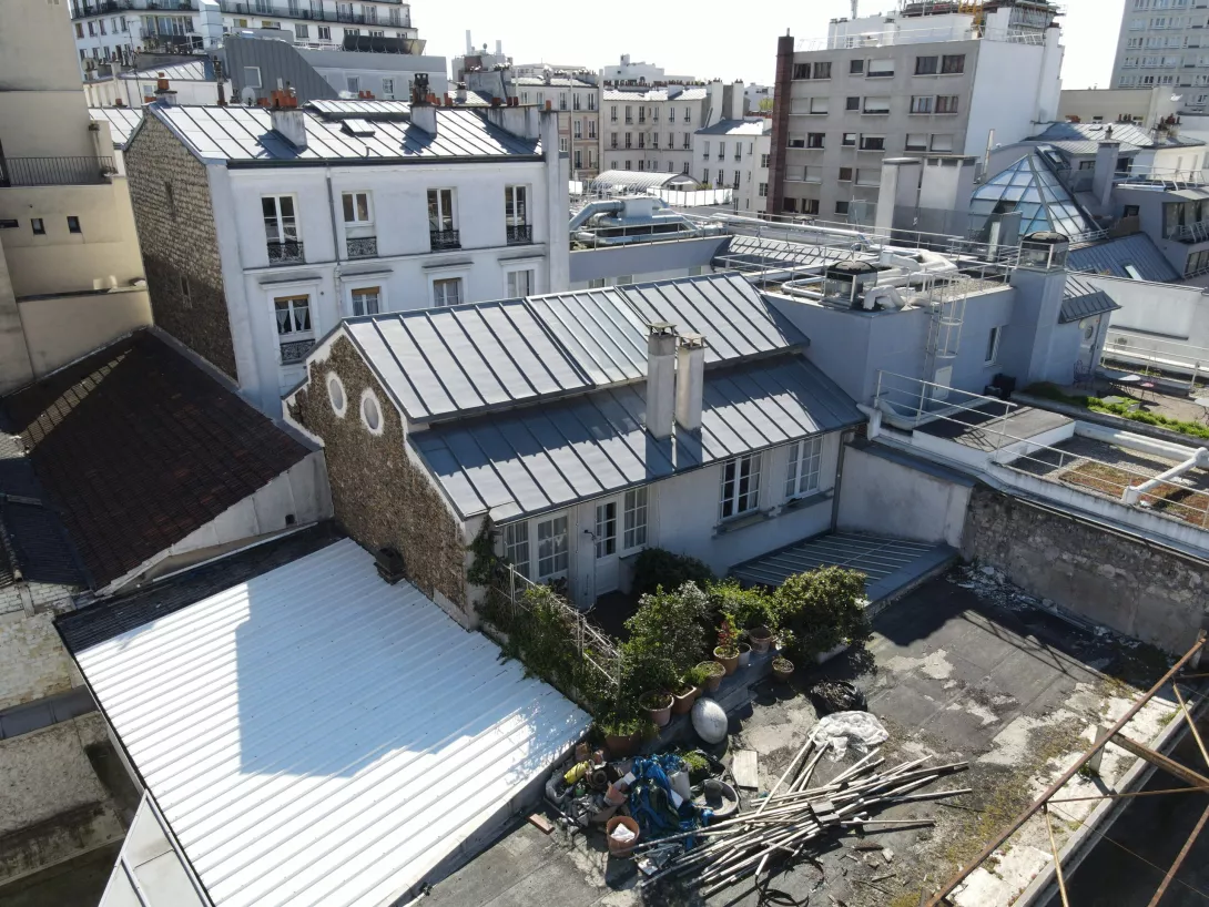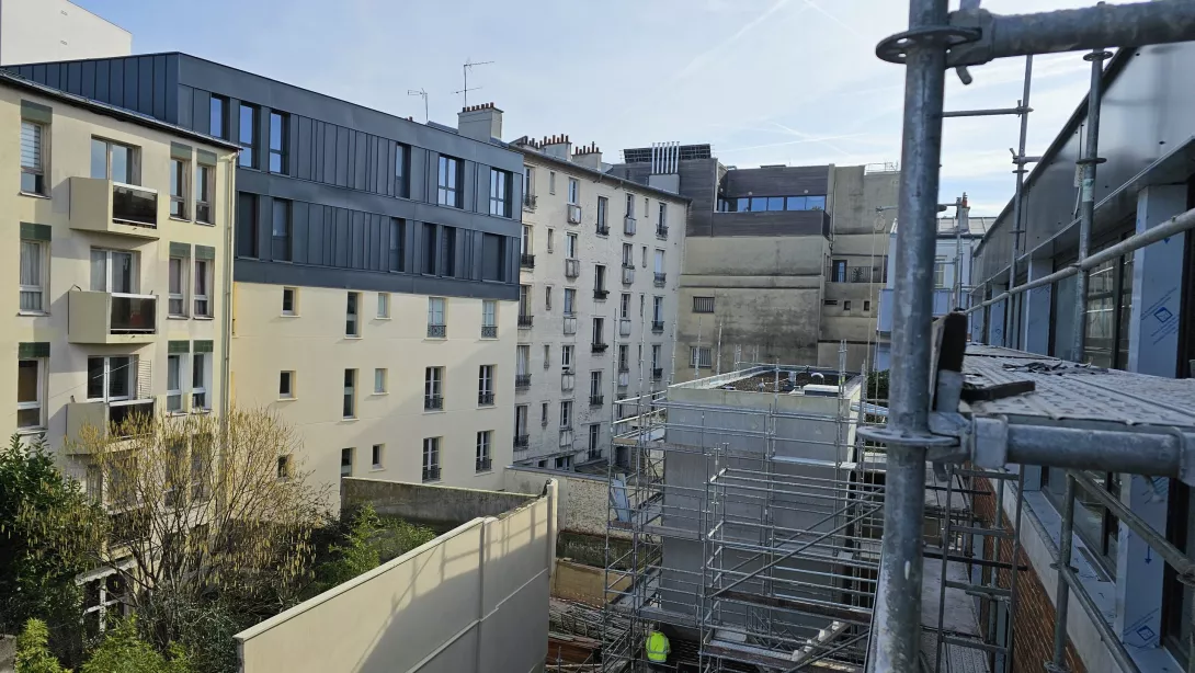 Réhabilitation de l’immeuble sur rue (actuellement R+3 + Combles), et sa surélévation pour en faire un immeuble de logements