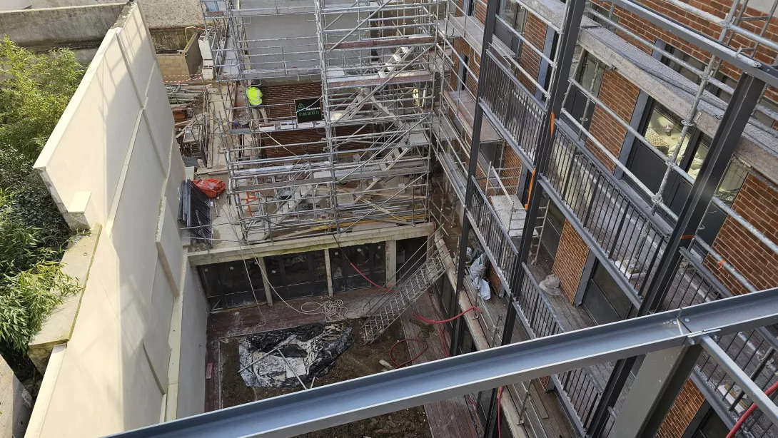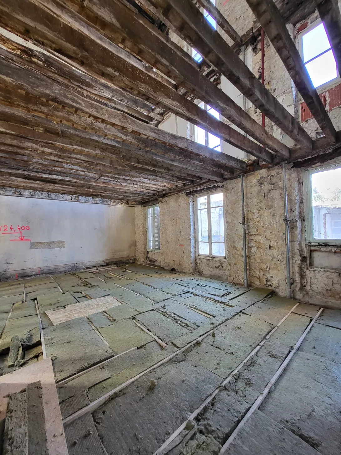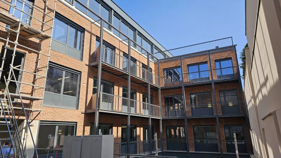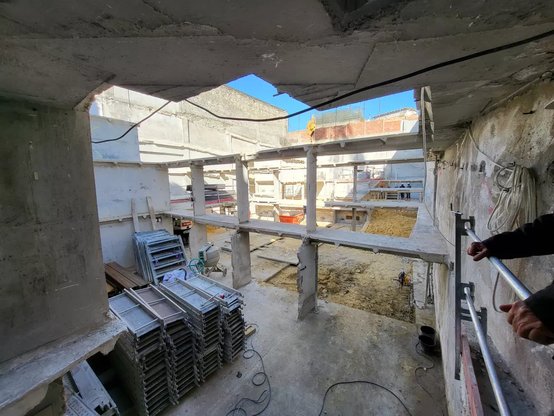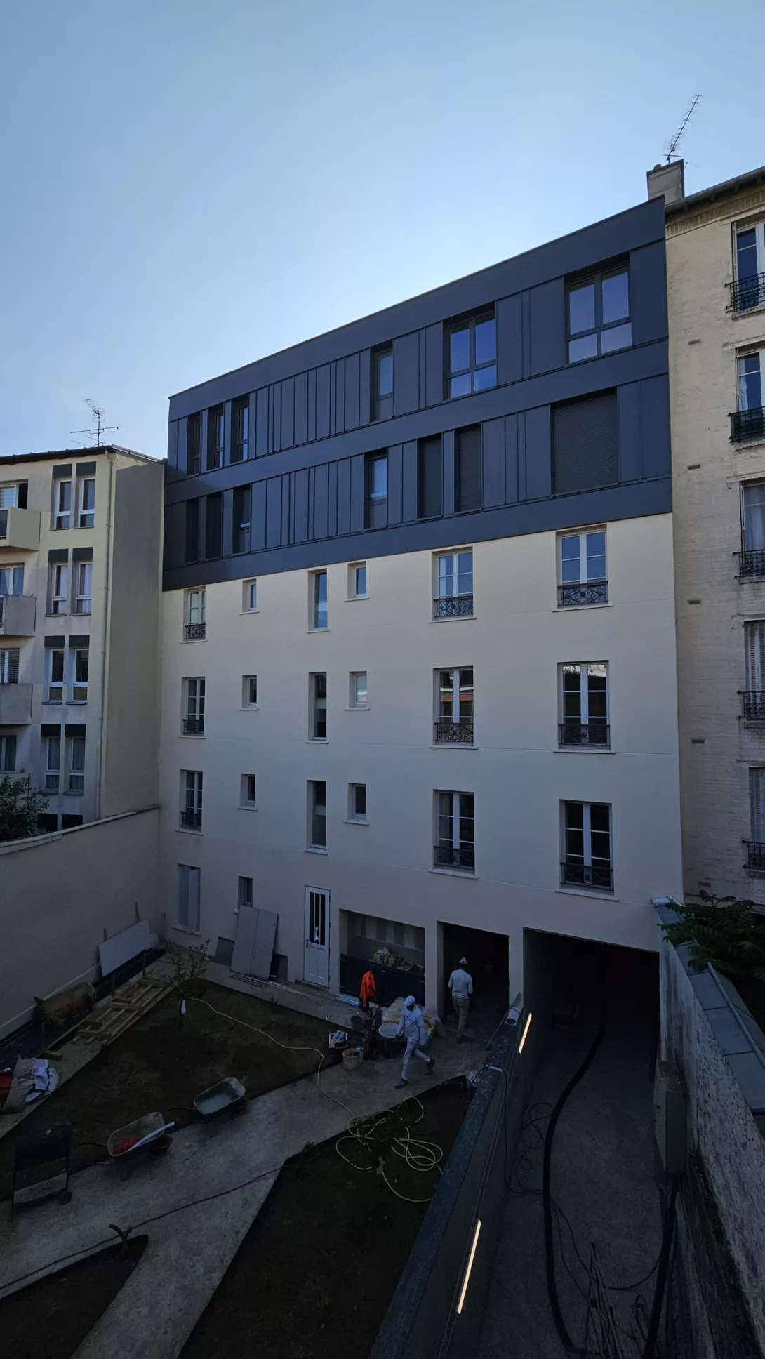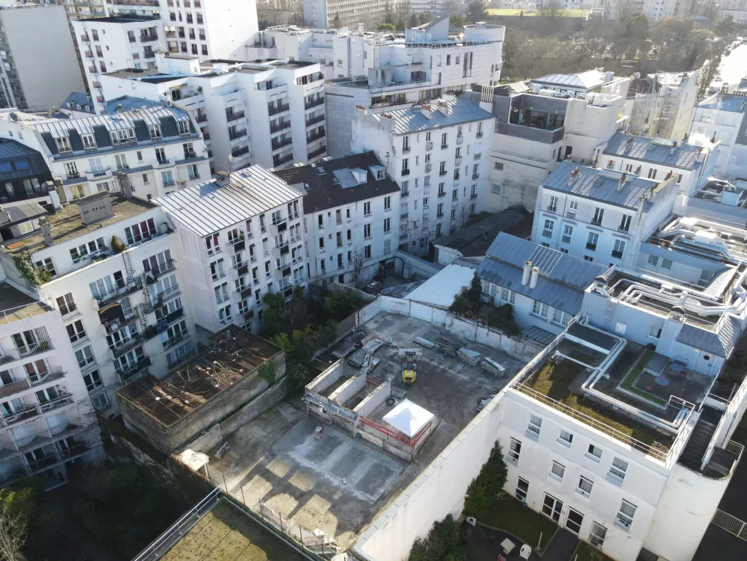 Réhabilitation de l’immeuble sur rue (actuellement R+3 + Combles), et sa surélévation pour en faire un immeuble de logements