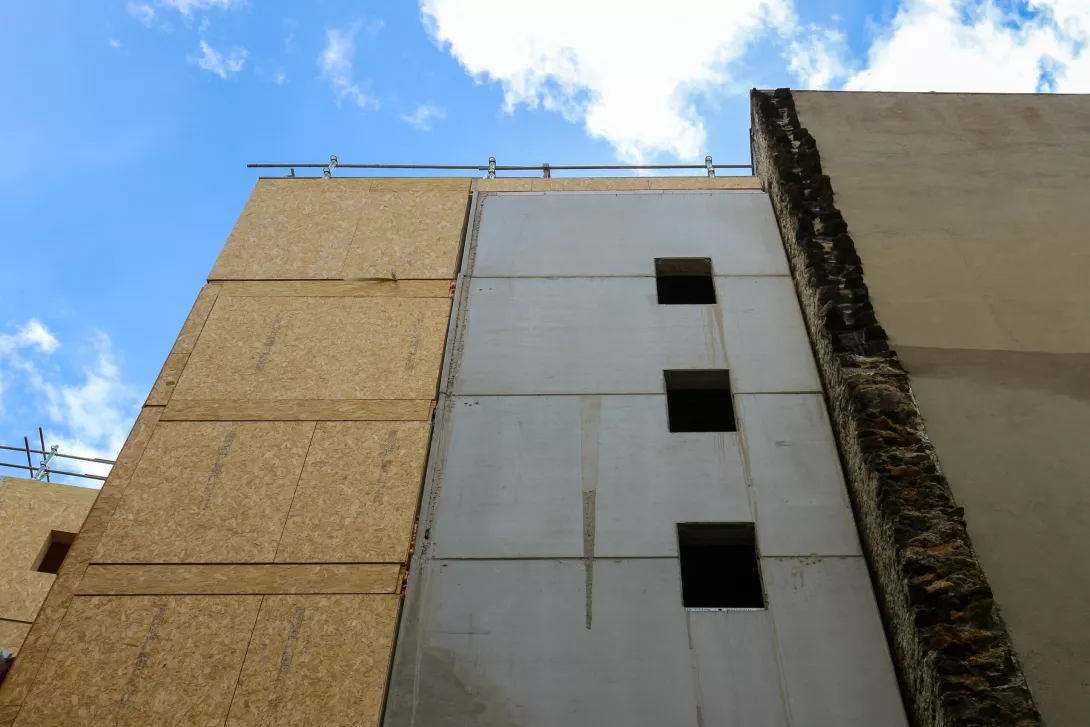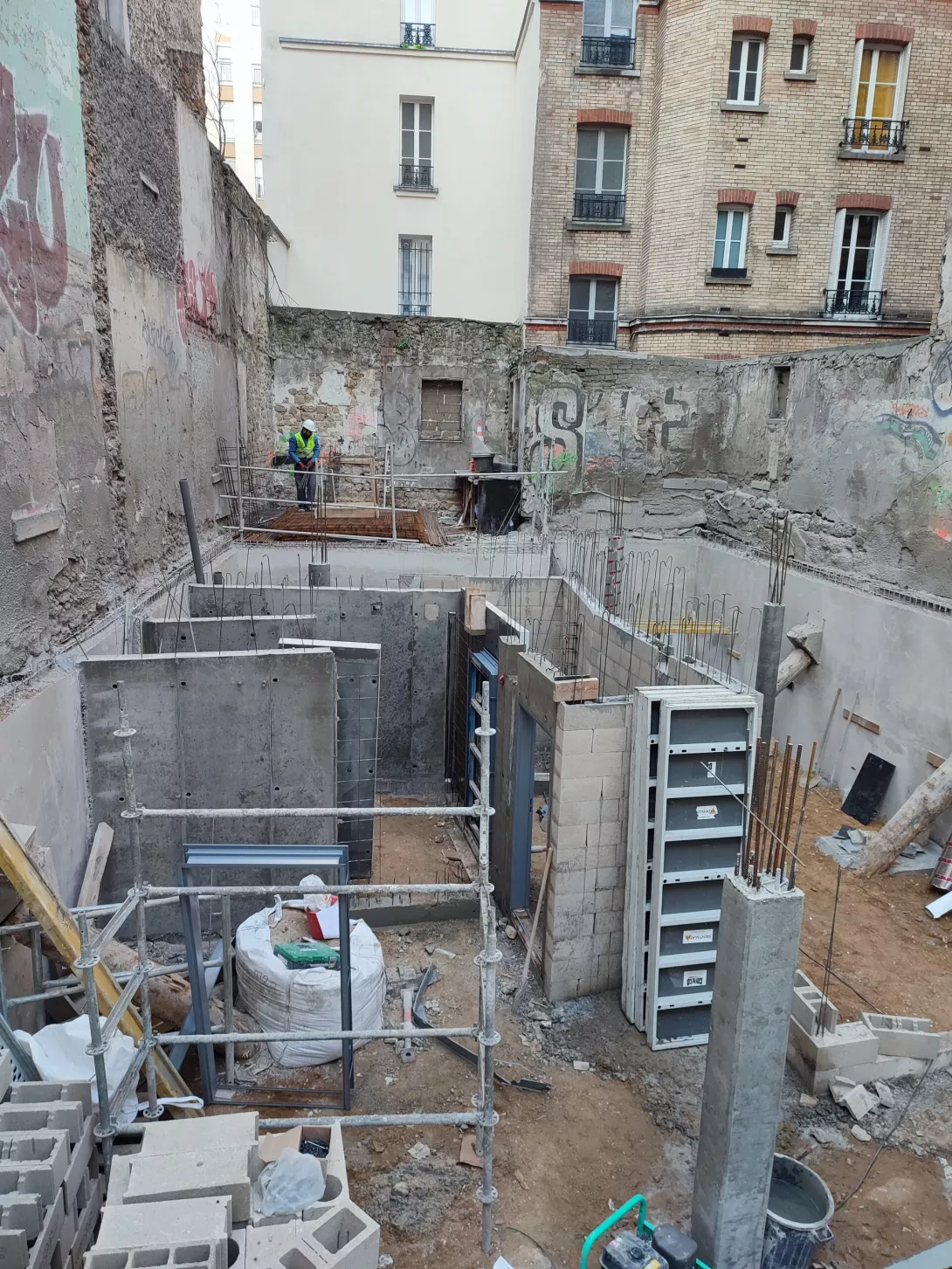 Construction en tous corps d'état de 11 logements et d'un local commercial. Site occupé par une association avec diverses structures en bois (blancs, table, éolienne et stockage) sans aucune culture dans le sol