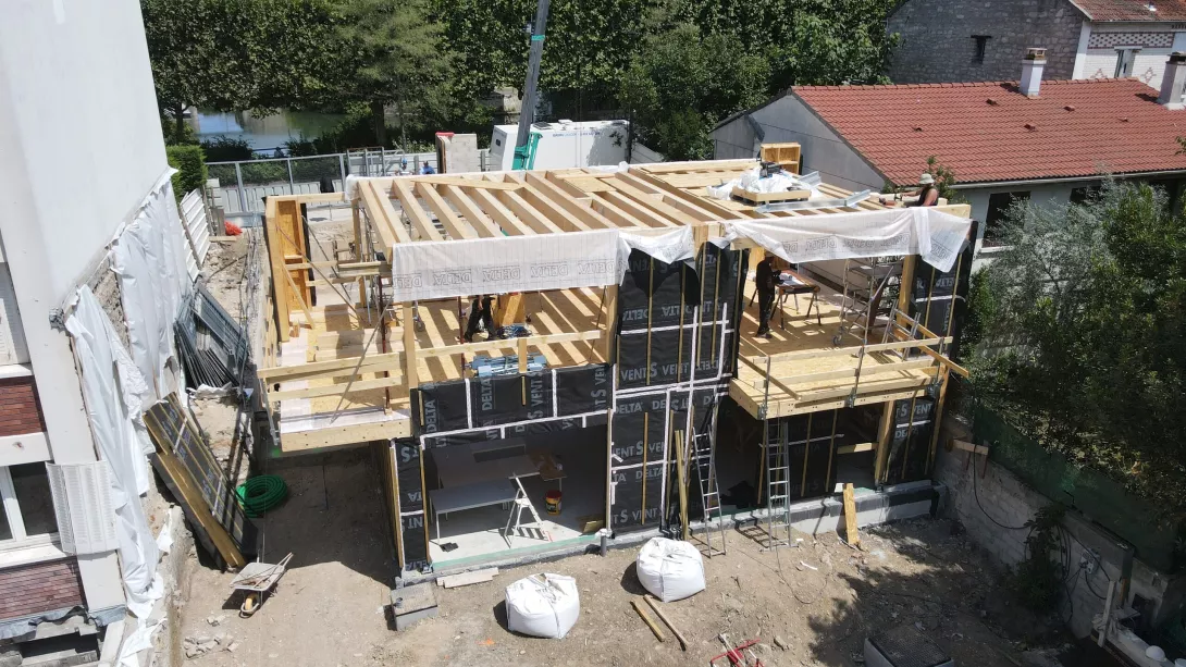 CONCEPTION REALISATION DE 5 LOGEMENTS EN CONSTRUCTION BOIS Nature des travaux Construction en ossature bois de 5 logements Perf Thermique RT 2012 Lieu 74 avenue JOFFRE, MAISONS-ALFORT Maître d'ouvrage Maisons-Alfort Habitat Maître d'oeuvre TAZK / SOUL BET Cabinet MTC Montant des travaux 1 605 k€ Durée des travaux 15 mois Livraison 2024 Fichier vidéo